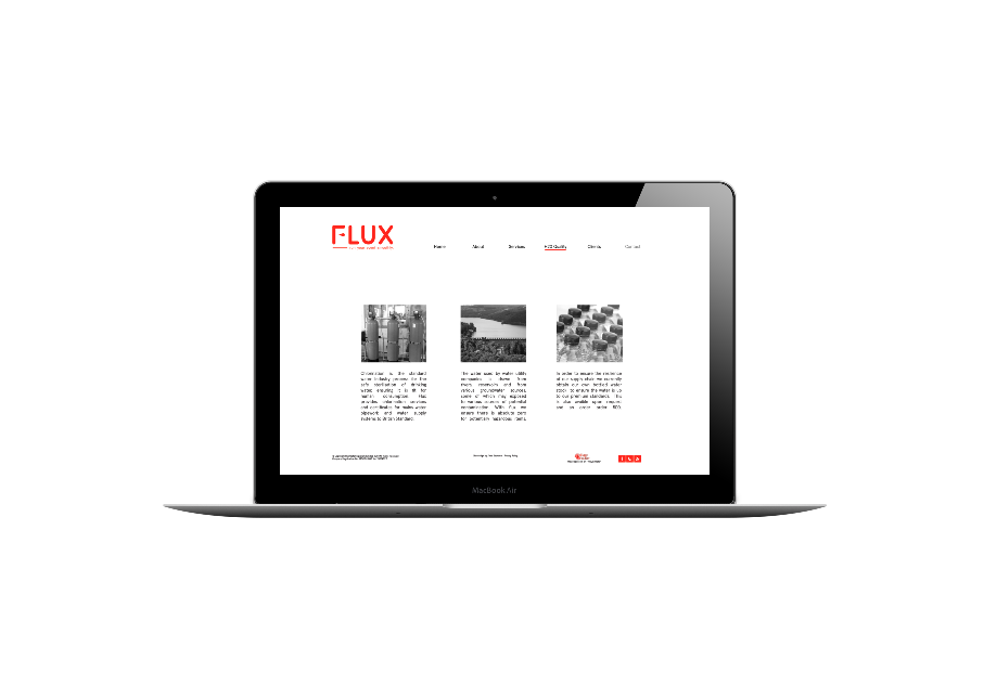 Using imagery for festivals and events to highlight the scale and clientele that Flux works with. Again maintaining a monochromatic theme with hints of red for consistency.
